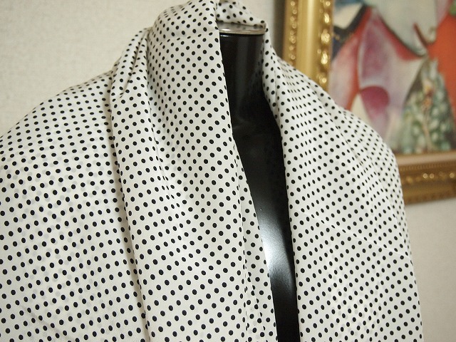 閉店大セール お買得 【シルク 厚手デシン ドットプリント】イタリー製 輸入生地 シルク100% 白/黒 110cm巾3.8m (...