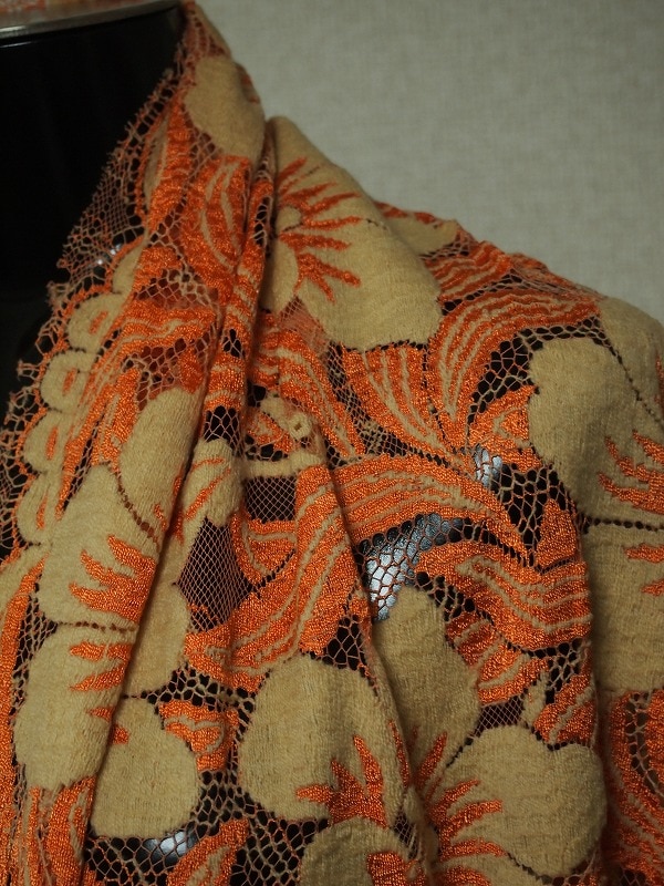 閉店処分大セール お買得 【名門 SOLSTISS/ウールリバーレース】 フランス製,輸入生地, ベージュ/オレンジ 90cm巾 ...