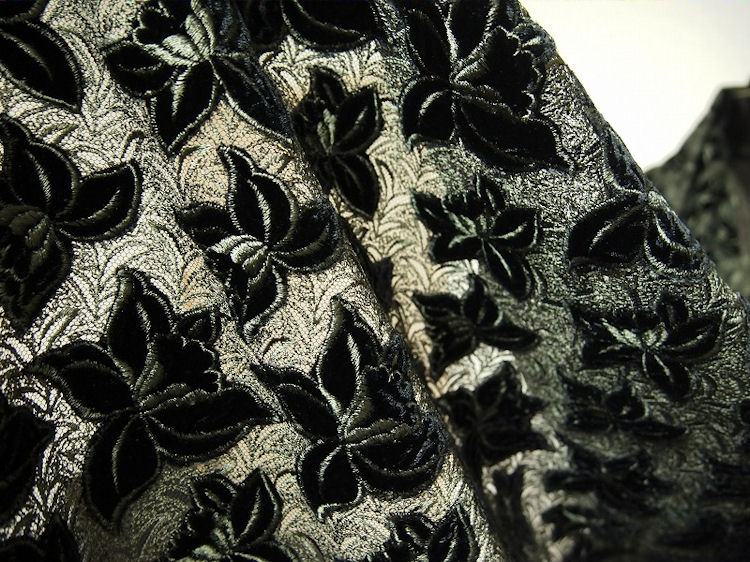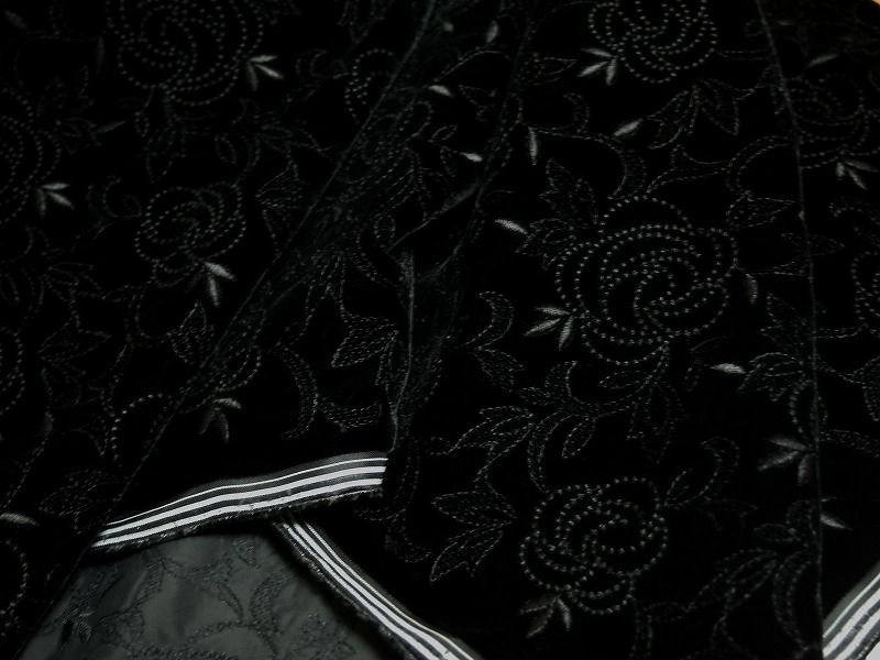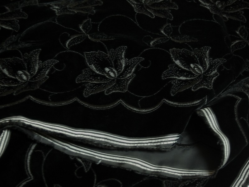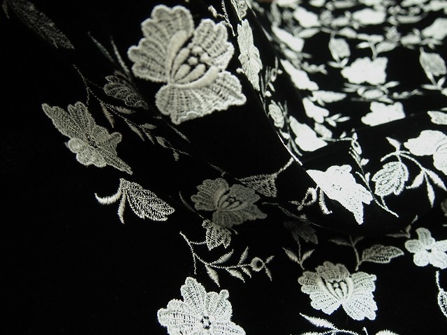 閉店大セール お買得 【ベルベット/レース 花の柄】 日本製生地 黒/ライトグレー系刺繍 110cm巾3.4mスーツ、ワンピース、...