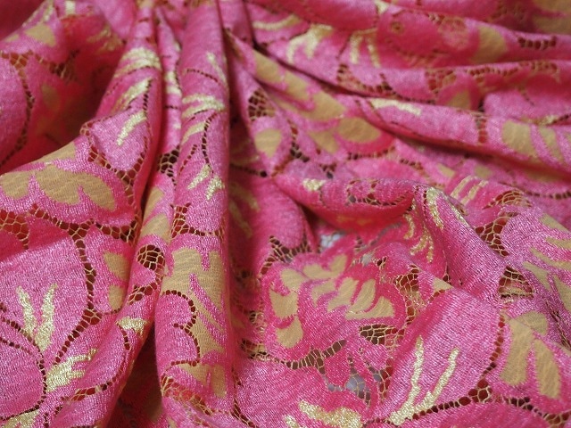閉店処分大セール お買得 【名門 SOLSTISS/リバーレース】フランス製,輸入生地, ピンク/オレンジ 120cm巾2.4m ...