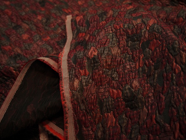 閉店大セールお買得 【コーティング/膨れ織りジャガード コート生地】 イタリ―製,輸入生地 ワイン系 ポリエステル20%アセテート...