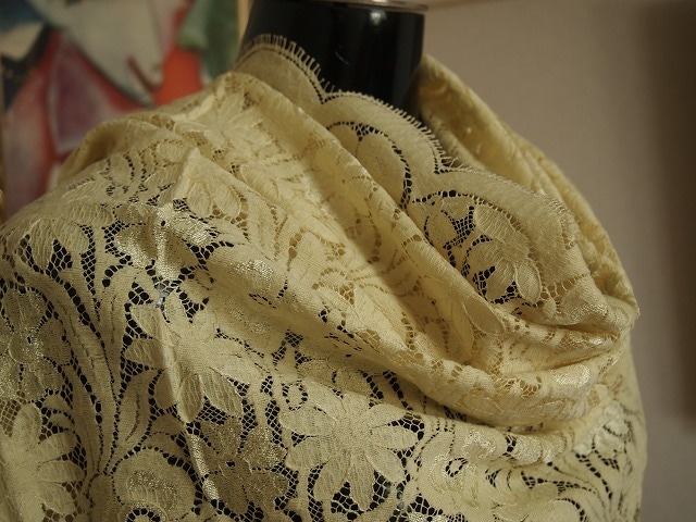 閉店処分大セール お買得 【名門 SOLSTISS/ウールリバーレース】フランス製,輸入生地, ベージュ 90cm巾3.9m ...