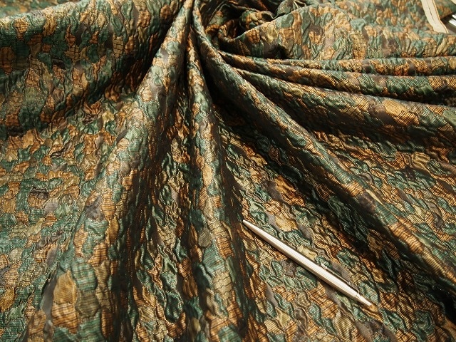 閉店大セールお買得 【コーティング/膨れ織りジャガード コート生地】 イタリ―製,輸入生地 レンガ/グリーン系 ポリエステル20%...