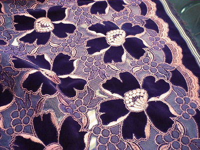 閉店大セール お買得 【チュール/ベルベット ハンドカット/レース 花柄】 日本製生地 パープル系 90cm巾3.5m 2381-...