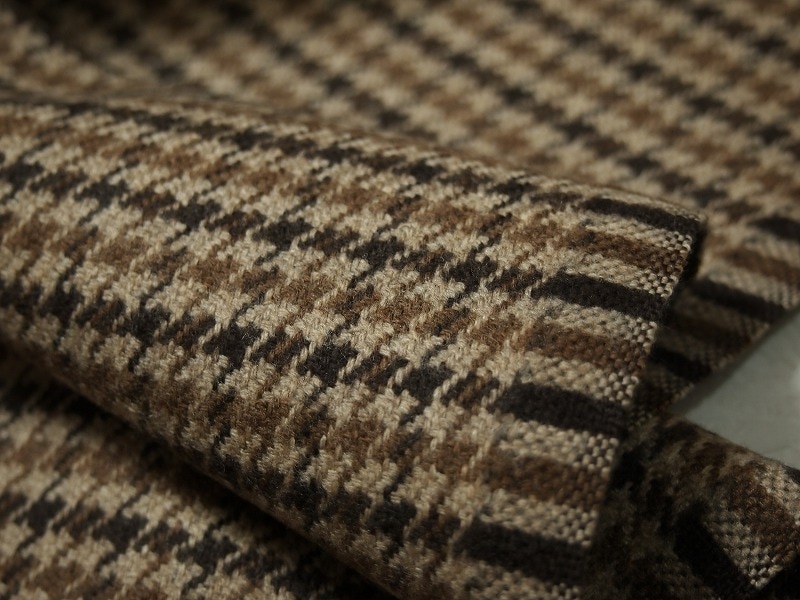 閉店大セール お買得 【GIVENCHY/ジバンシー/メリノウール/ガンクラブチェック】フランス製,輸入生地 茶系 140cm巾2...