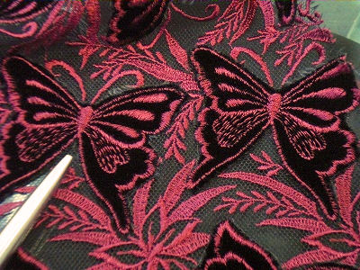 閉店処分セール お買得 【チュール/ベルベット ハンドカット/レース 蝶の柄】 日本製生地 黒/ワイン系 90cm巾3.4m 23...