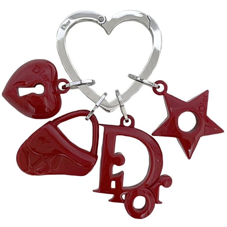 クリスチャン ディオール キーリング ec-23595 レッド シルバー 美品 プラスチック メタル 中古 Christian D...