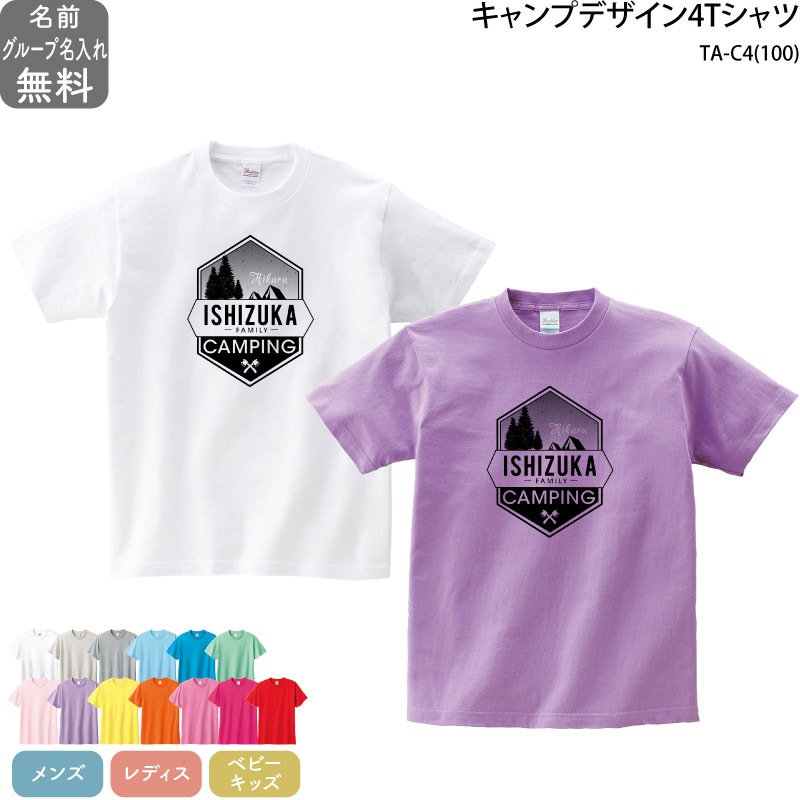 名入れOK! _ 1枚でも、お揃いでも! _ アウトドアキャンプ4Tシャツ
