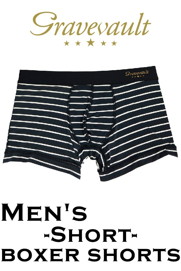 メンズ gravevault ボーダー 日本製ボクサーショーツ ギフトにも(ネイビー)