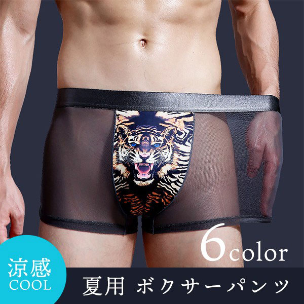 【セール】【即納】メンズ インナー ボクサーパンツ シースルー 虎柄 トラ 接触冷感 アイスシルク 吸水速乾性 下着 アンダーウェ...