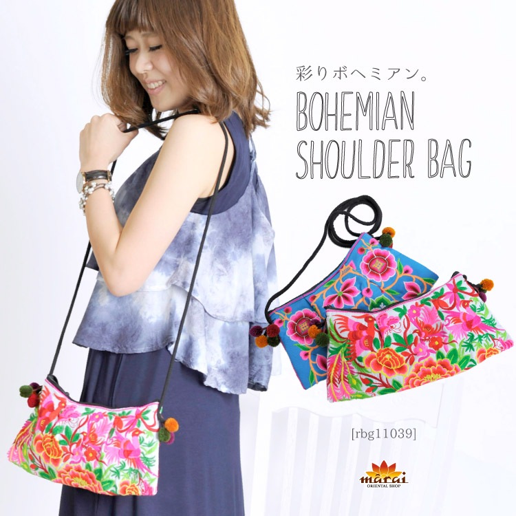 彩りボヘミアン。モン族刺繍ショルダーバッグ