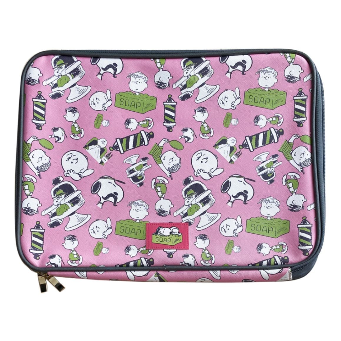 PEANUTS スヌーピー ドキュメントポーチ ピンク×グリーン