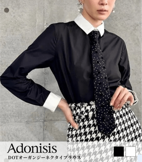 【Adonisis】DOTオーガンジーネクタイブラウス★250323