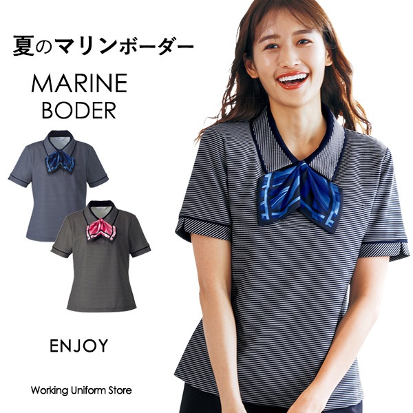 事務服 半袖 ポロシャツ ESP557 マリンボーダーニット エンジョイenjoyカーシーカシマ