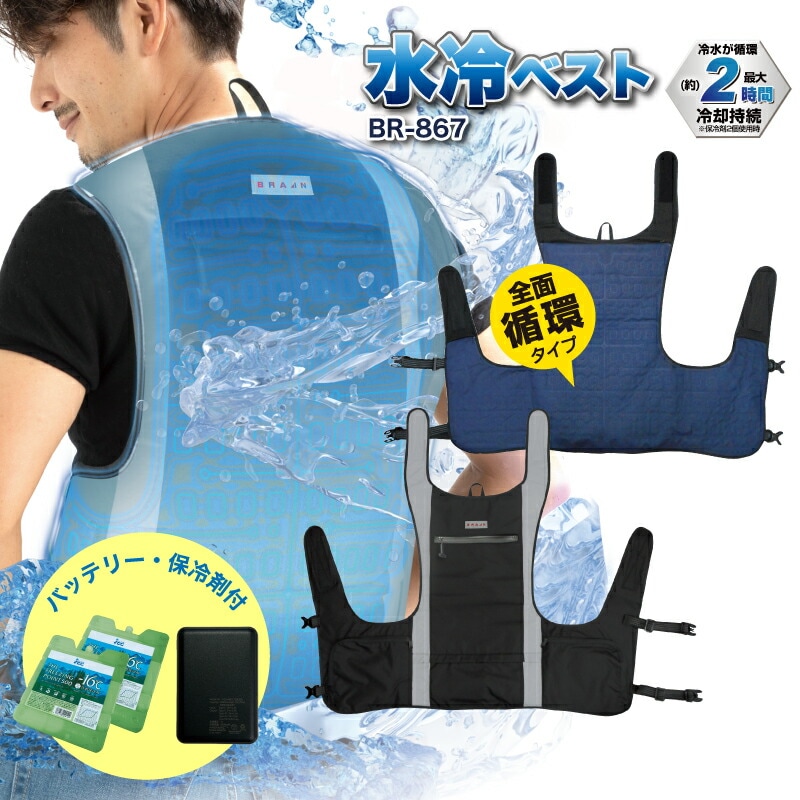 水冷ベスト BR-867(冷水循環型)全面タイプ(水冷ベスト+バッテリー+保冷剤セット)暑さ対策 熱中症 対策 涼しい ひんやり ...