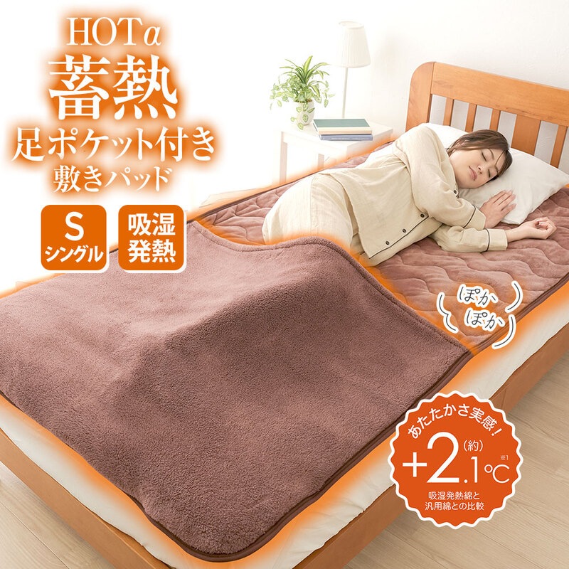 あったか シングル 冬 足ポケット 吸湿発熱 毛布 ブラウン 100 × 200 ホットアルファ HOTα蓄熱足ポケット付き敷きパ...
