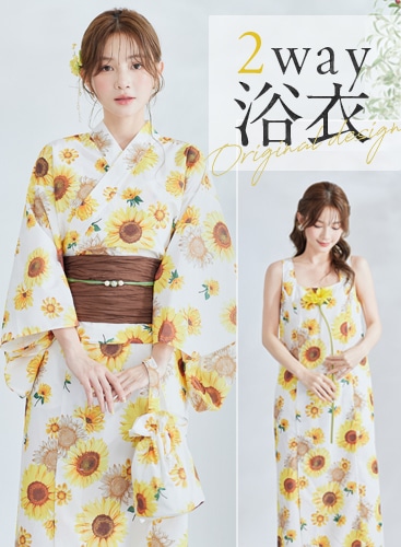 【2~3営業日で発送】レディイエロー向日葵2way浴衣《浴衣4点セット》【Malymoon/マリームーン】【YK2510310】