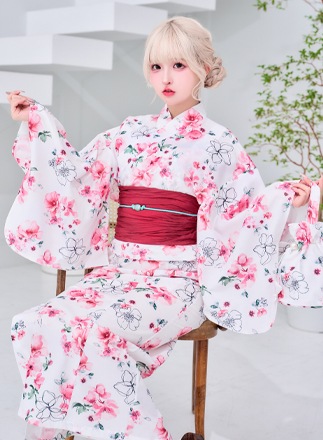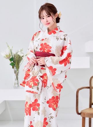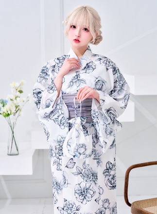 【2~3営業日で発送】雪白レトロ牡丹2way浴衣《浴衣4点セット》【Malymoon/マリームーン】【YK2510303】