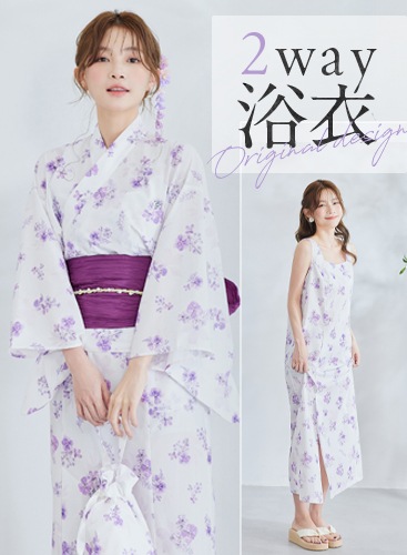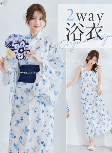 【2~3営業日で発送】水彩プティフラワー2way浴衣《浴衣4点セット》【Malymoon/マリームーン】【YK2510316】