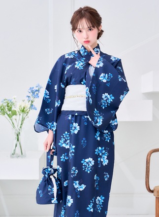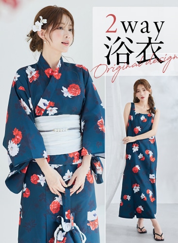 【2~3営業日で発送】【藤咲凪着用】ネイビーコントラスト花柄2way浴衣《浴衣4点セット》【Malymoon/マリームーン】【YK...