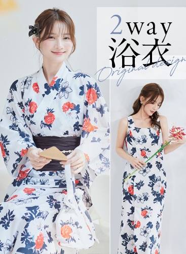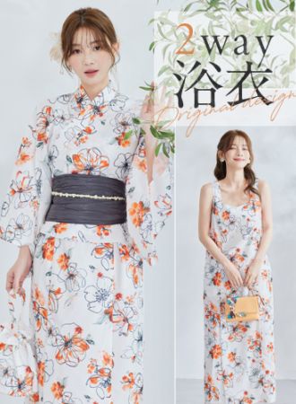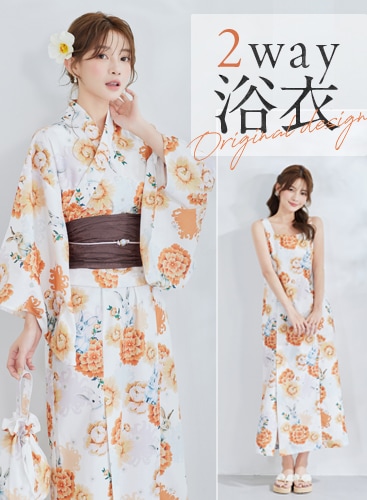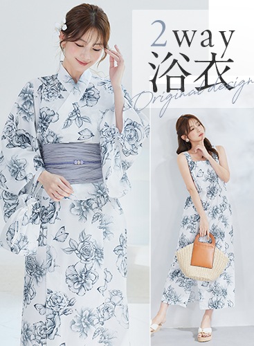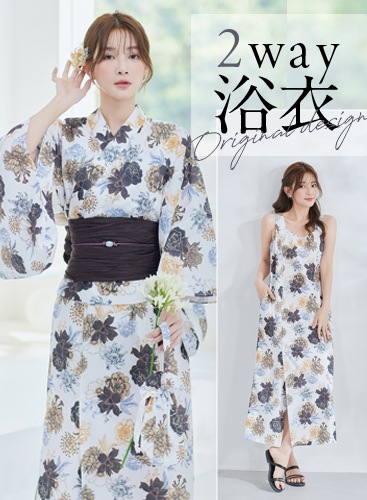 【2~3営業日で発送】エレガンスモダン花模様2way浴衣《浴衣4点セット》【Malymoon/マリームーン】【YK2510312】