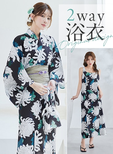 【2~3営業日で発送】スタイリッシュモダン花柄2way浴衣《浴衣4点セット》【Malymoon/マリームーン】【YK2510305...