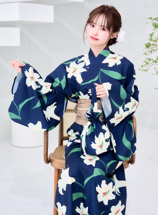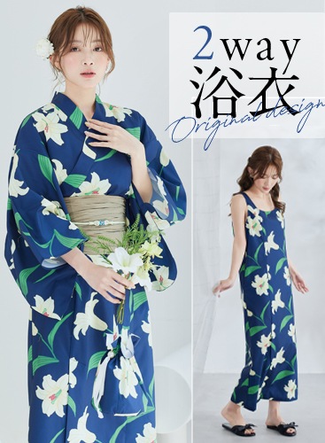 【2~3営業日で発送】リゾートブルー白百合2way浴衣《浴衣4点セット》【Malymoon/マリームーン】【YK2510306】
