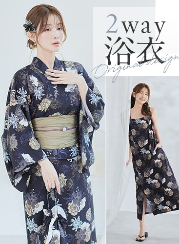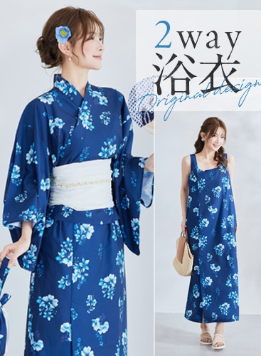 【2~3営業日で発送】ネイビーコントラスト花柄2way浴衣《浴衣4点セット》【Malymoon/マリームーン】【YK2510318...