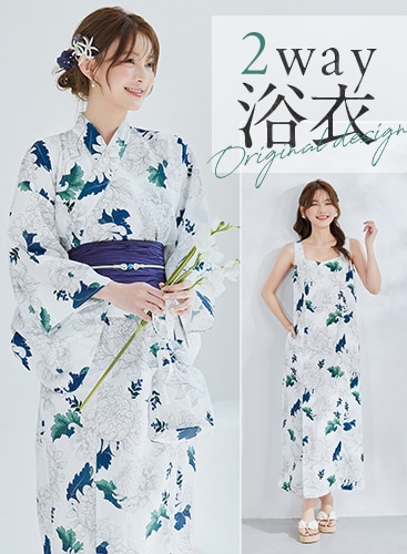 【2~3営業日で発送】サマーリーフ白菊2way浴衣《浴衣4点セット》【Malymoon/マリームーン】【YK2510320】