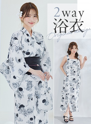 【2~3営業日で発送】浮世ドラゴン艶麗2way浴衣《浴衣4点セット》【Malymoon/マリームーン】【YK2510313】
