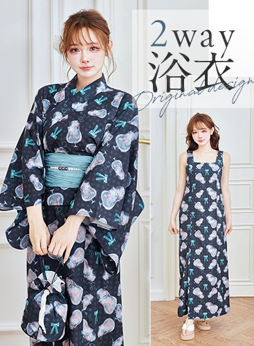 【2~3営業日で発送】レディモダン花結び2way浴衣《浴衣4点セット》【Malymoon/マリームーン】【YK2510307】