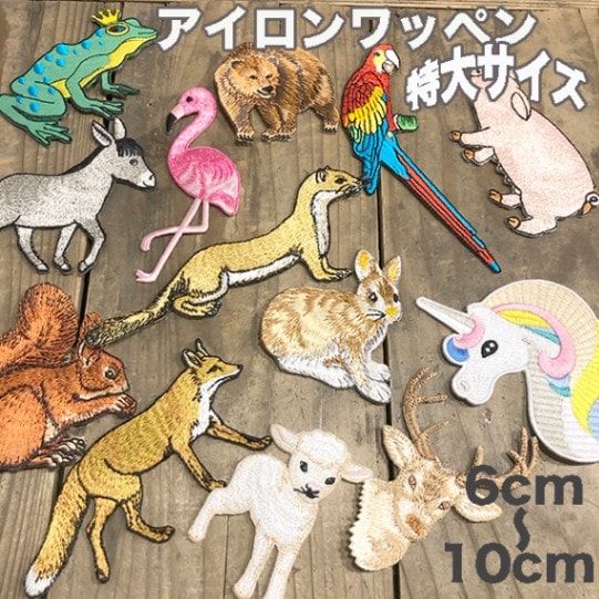 6から10cm 特大 のり付きワッペン アップリケ アニマルワッペン いきものワッペン 動物ワッペン カワウソ フラミンゴ ユニコ...