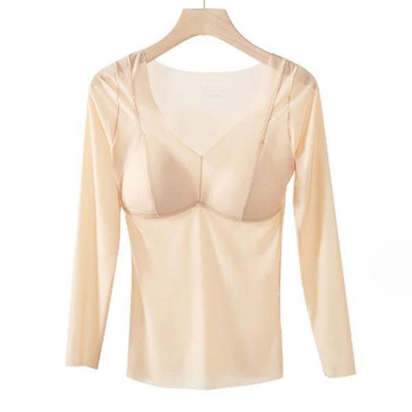 レディース 長袖ブラトップ カップ付インナー 胸パッド内蔵 一体型 フリーサイズ 3カラー 肌着 薄い 肌ざわり良い 快適 通気性...