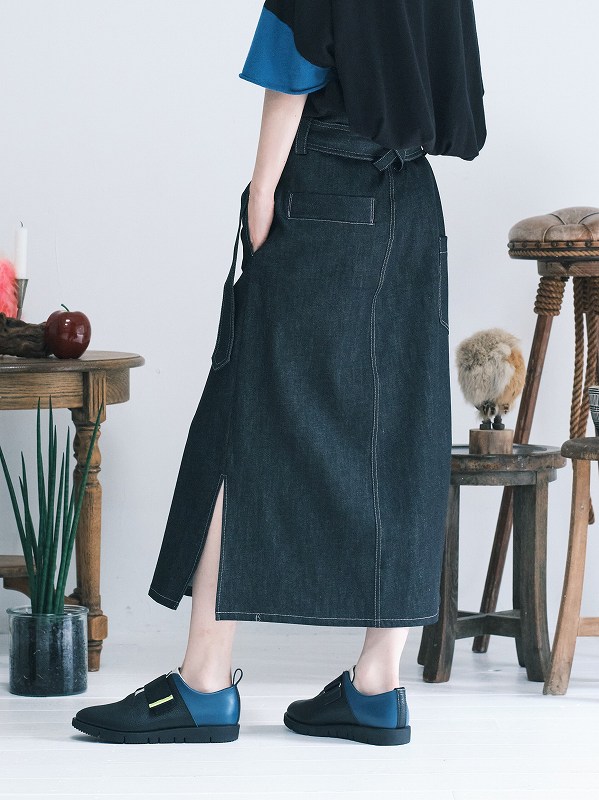【BEDSIDEDRAMAベッドサイドドラマ】 bsd22SS-08 Twist Wrap Denim Skirt (2色)