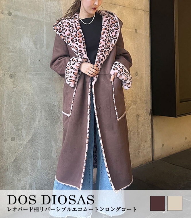 【DOS DIOSAS】レオパード柄リバーシブルエコムートンロングコート★☆D8412