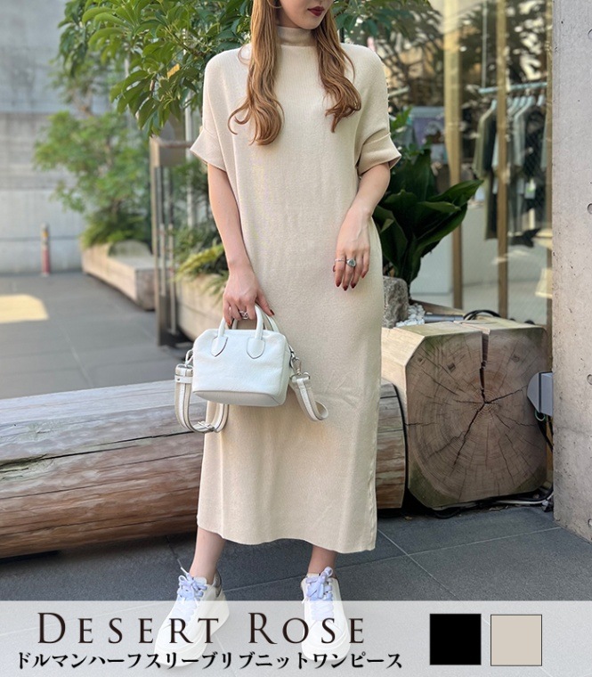 【DESERT ROSE】ドルマンハーフスリーブリブニットワンピース★BDOP-22