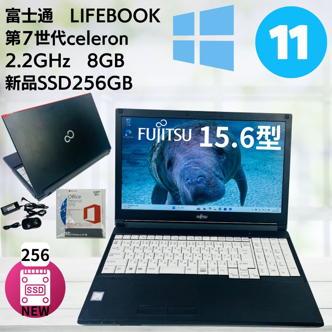 【中古】富士通 LIFEBOOK A577/第7世代 Celeron/メモリ: 8GB 新品 SSD:256GB/Wi-fi/Bl...