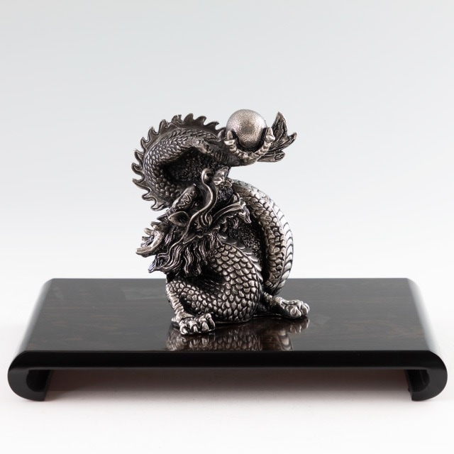 薩摩錫器 錫 置物 龍-KIRISHIMA 黒漆加工 台付 186M-5 岩切美巧堂 代引不可