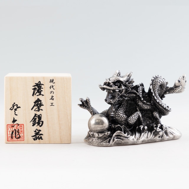 薩摩錫器 錫 置物 昇龍 台付 186F-5 薩摩錫器工芸館 代引不可