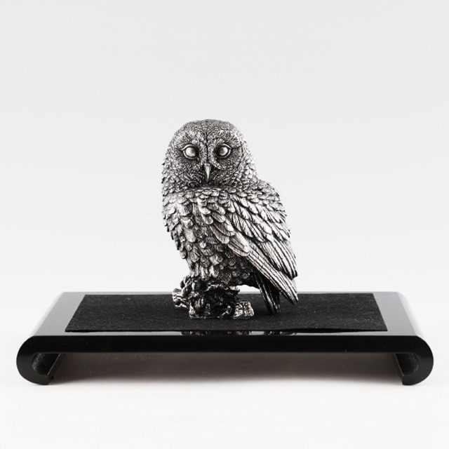 薩摩錫器 錫 置物 ふくろう 台付 イブシ加工 189-2 岩切美巧堂 代引不可