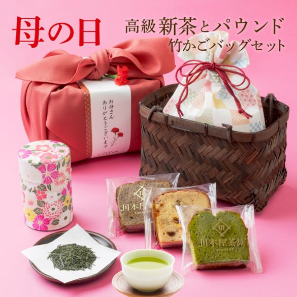 母の日 ギフト 新茶 手付き竹籠 静岡茶自家製パウンドセット ギフト プレゼント