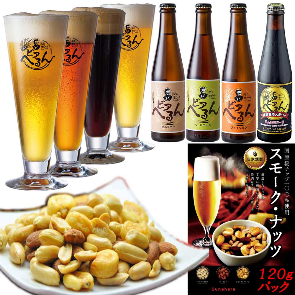 【 送料無料 】(東北・北海道・沖縄は追加送料あり) 超スモークナッツ 120g & 松江 ビアへるん 金賞 ビール 300ml瓶...