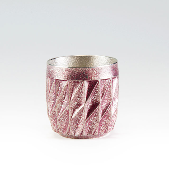 薩摩錫器 錫 切子シリーズ タイヤグラス イブシ加工 紫 250ml 94A-2 岩切美巧堂 代引不可
