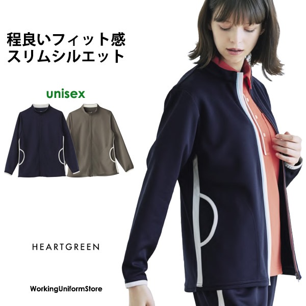 医療介護 男女兼用 ニットハーフジャケット HM-2117 エアリーポンチ ハートグリーン