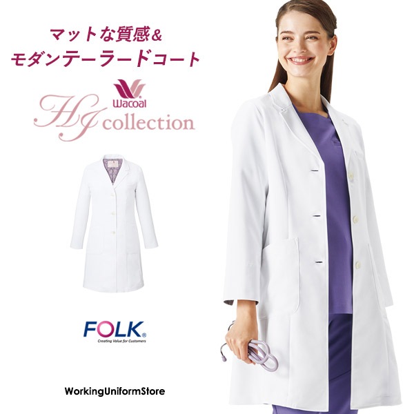 ワコールHIコレクション レディスコート HI404 フルイドツイル 医療ドクター白衣