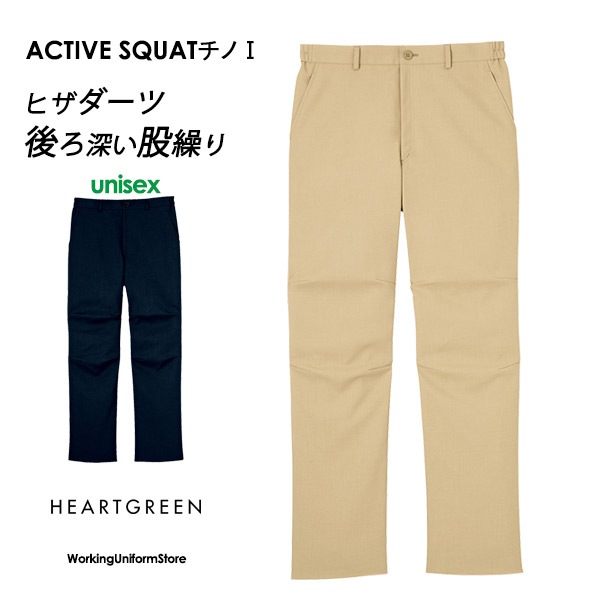 介護ユニフォーム 男女兼用 チノパンツ HM-2465 アクティブギャバ ハートグリーン