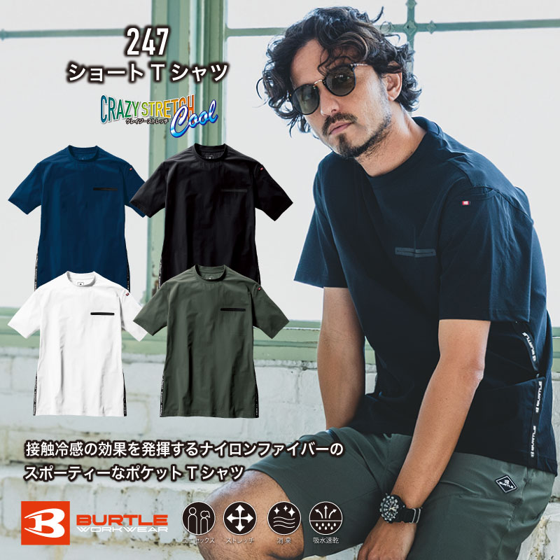 247 ショートTシャツ バートル 軽量 伸縮性 吸汗速乾 UVカット 夏 高機能 男女ユニセックスBURTLE 釣り ワーク ...