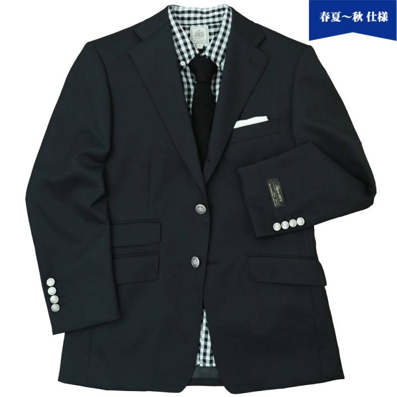 【キングサイズ】黒ブレザー 黒ブレ メンズ 春夏秋 3つボタン ジャケット メタルボタン 黒無地 オックスフォードクラシック (O...