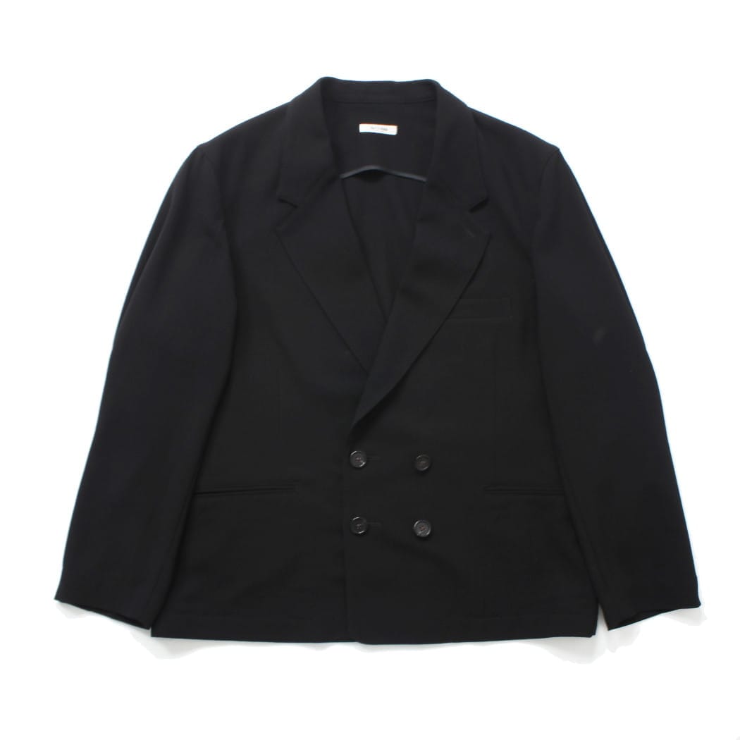 INTERIM インテリム ウール クレープ サブレ ベール デッドストック ファブリック パイピング ダブル ジャケット ブラッ...
