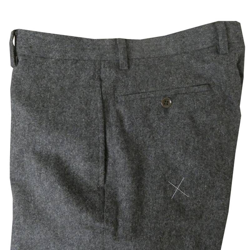スラックス メンズ 秋冬春 ノータック パンツ ホームスパン ウール混 ハイバセロン (HAI-VASERON) チャコールグレー...
